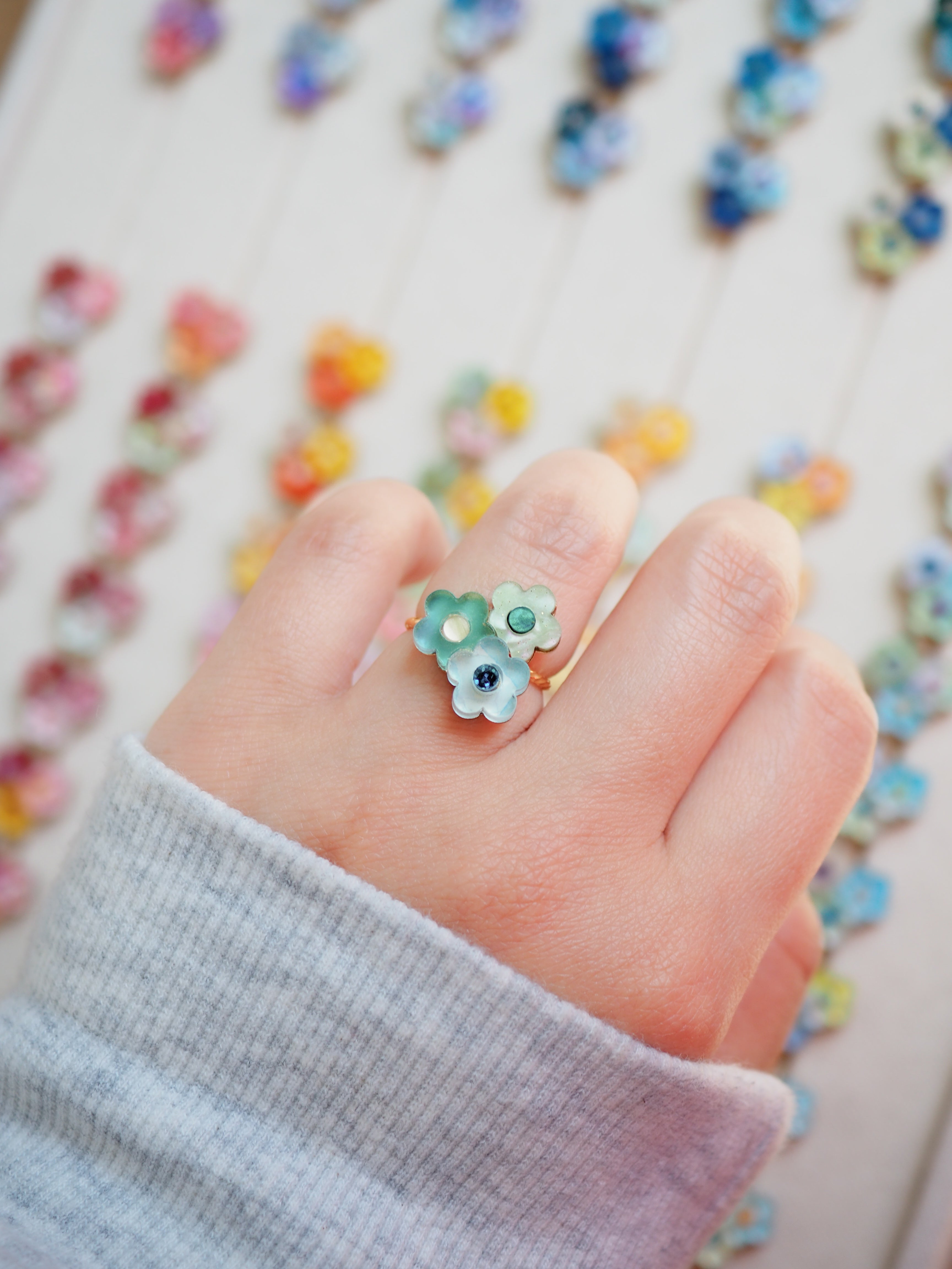 mが活動を始めたのは2014年。その頃から一貫して「水彩」と「アクリル」で何度も試作と実験を繰り返し、今の水彩アクセサリーが誕生しました。