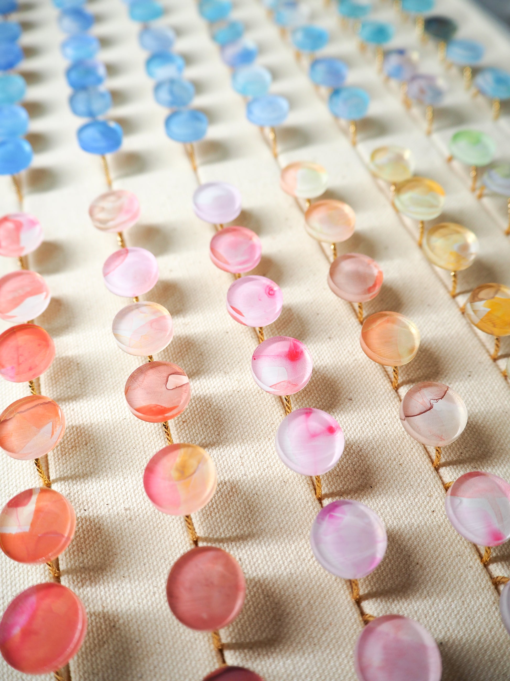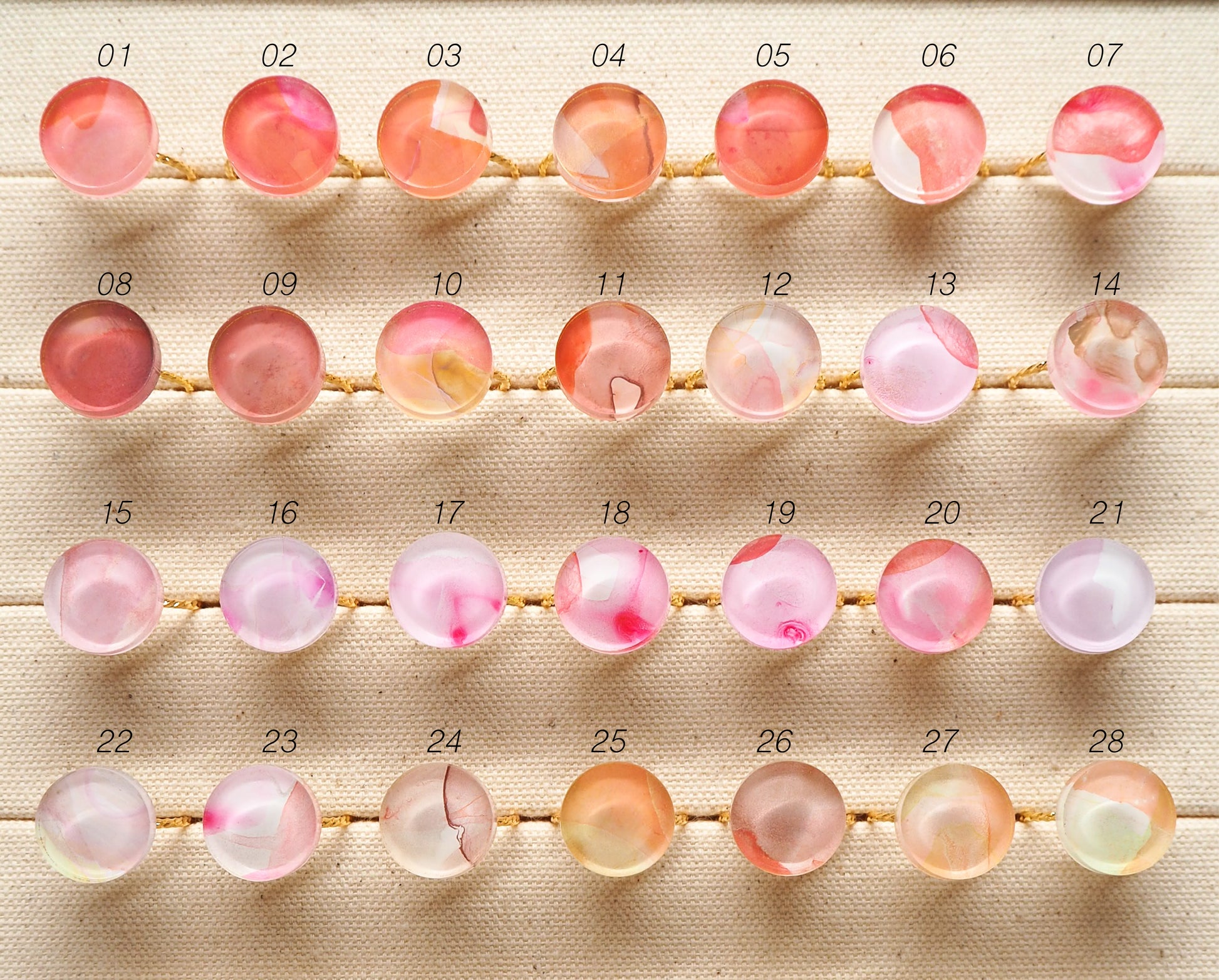 Due to the specifications of the cart, in rare cases where orders for one-of-a-kind items are concentrated and overlap within a few seconds of each other, the inventory will be negative. In this case, we will contact the customer who placed the last order and suggest that we make a piece with a similar color to the item you selected.