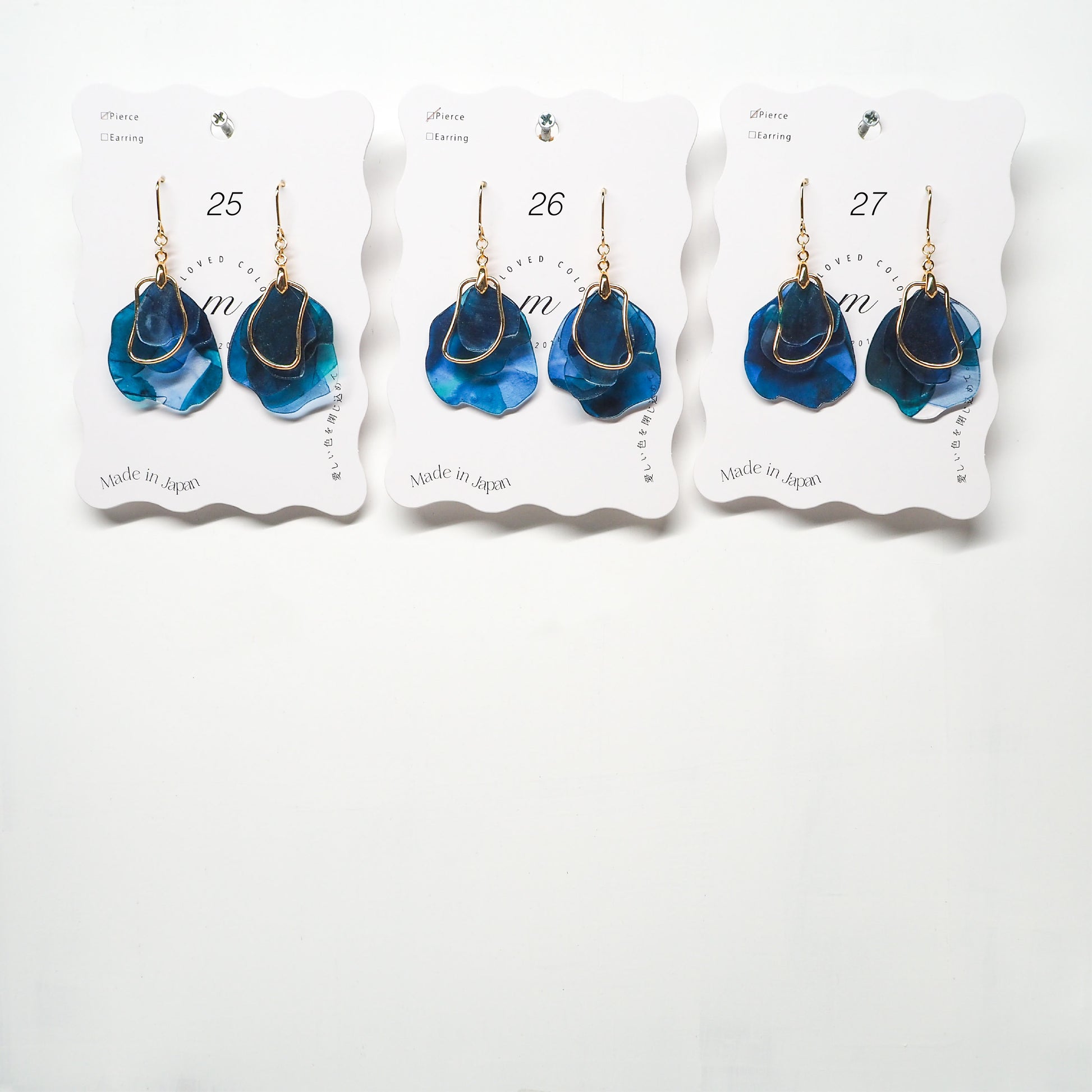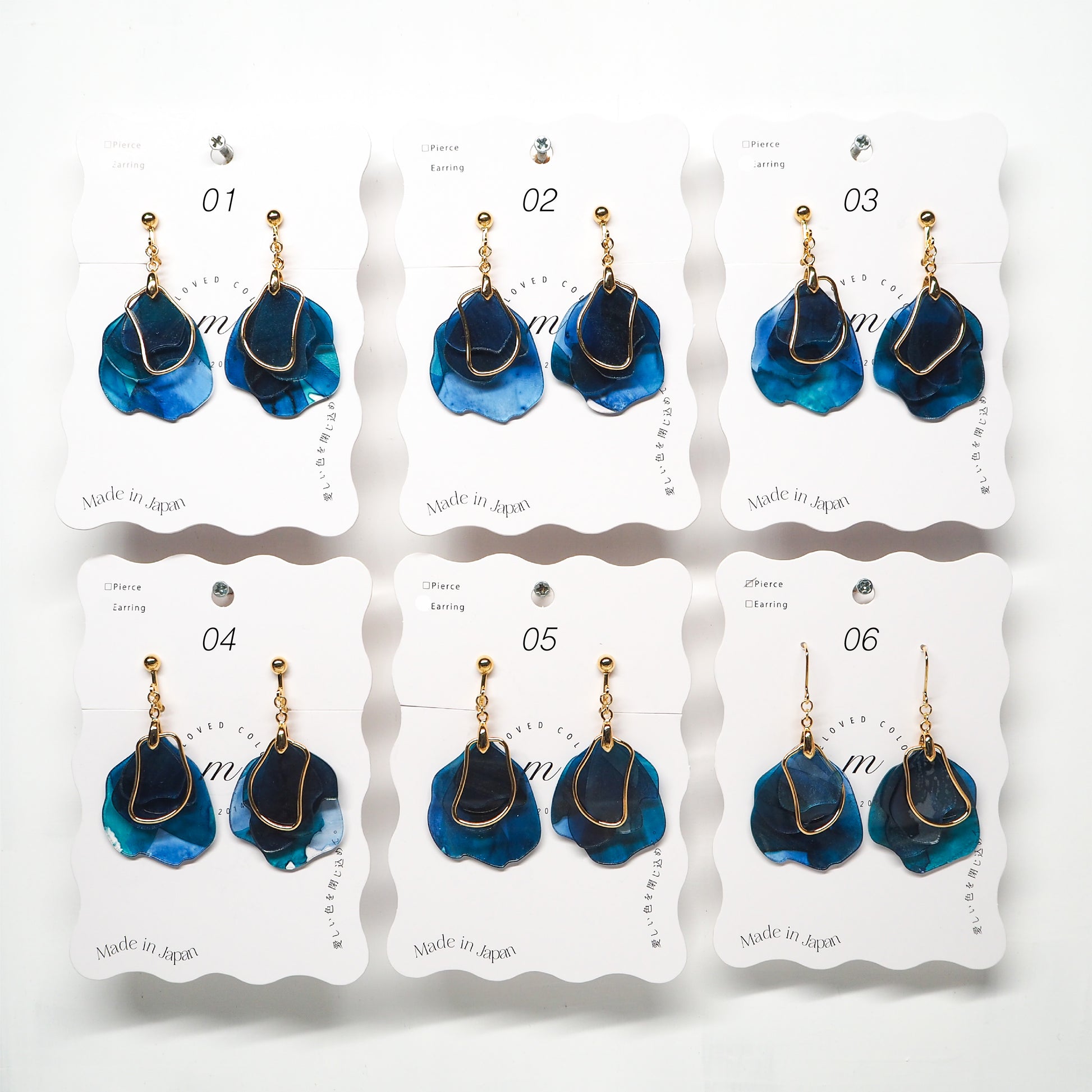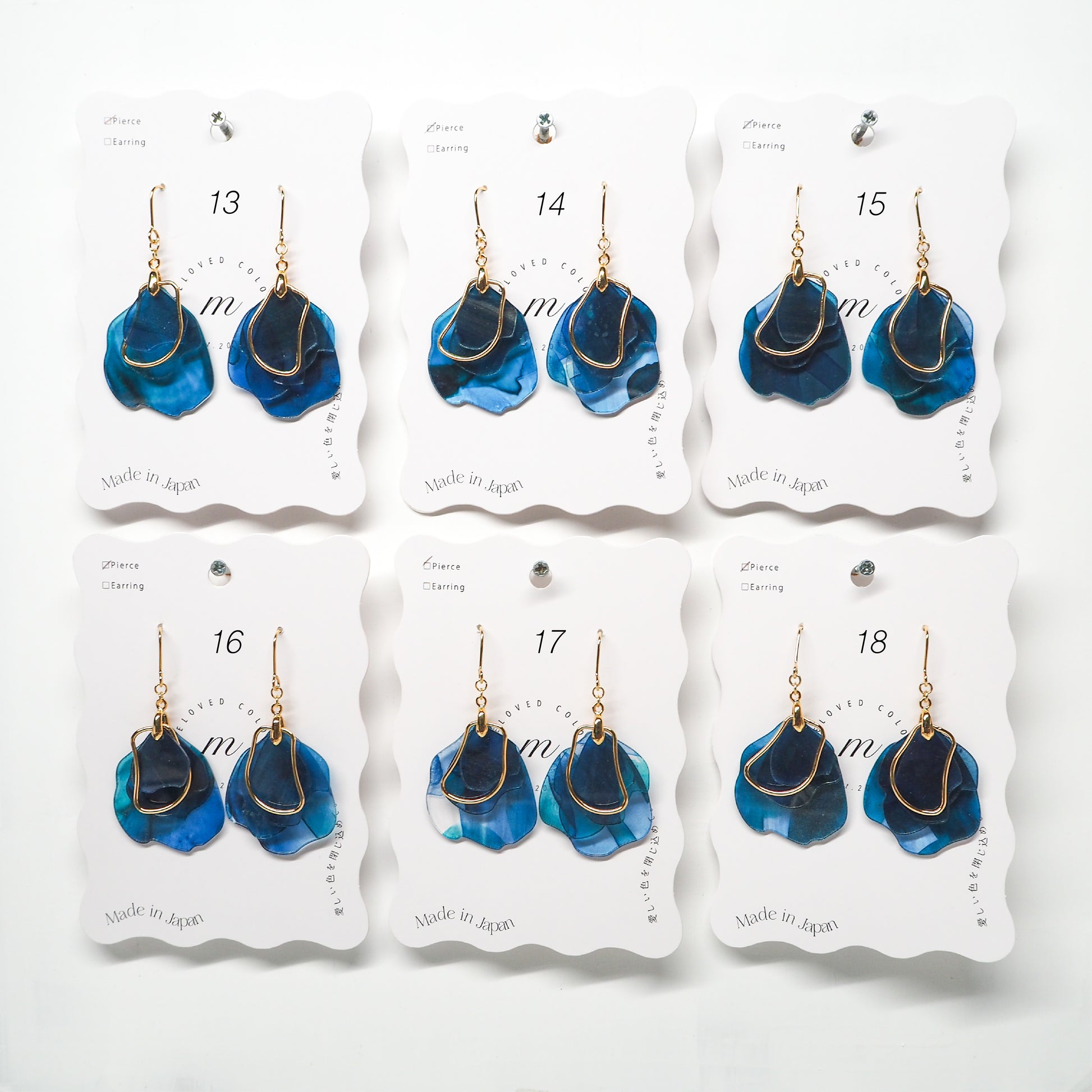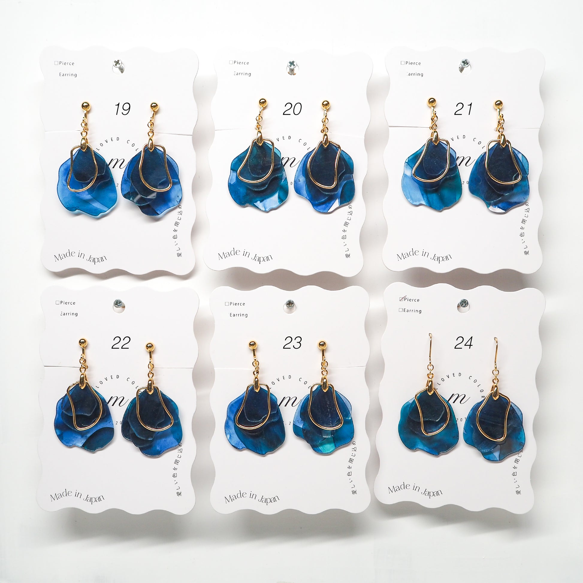 ピアスは英語でpierceではなく"earrings"が正しい表記になります。そのため【ピアス [Earrings]】のご案内にしています。イヤリングは"Clip-on Earrings"です。読みづらい箇所があるかと思いますが、海外のお客様へのアナウンスも兼ねておりますので、何卒ご了承ください。