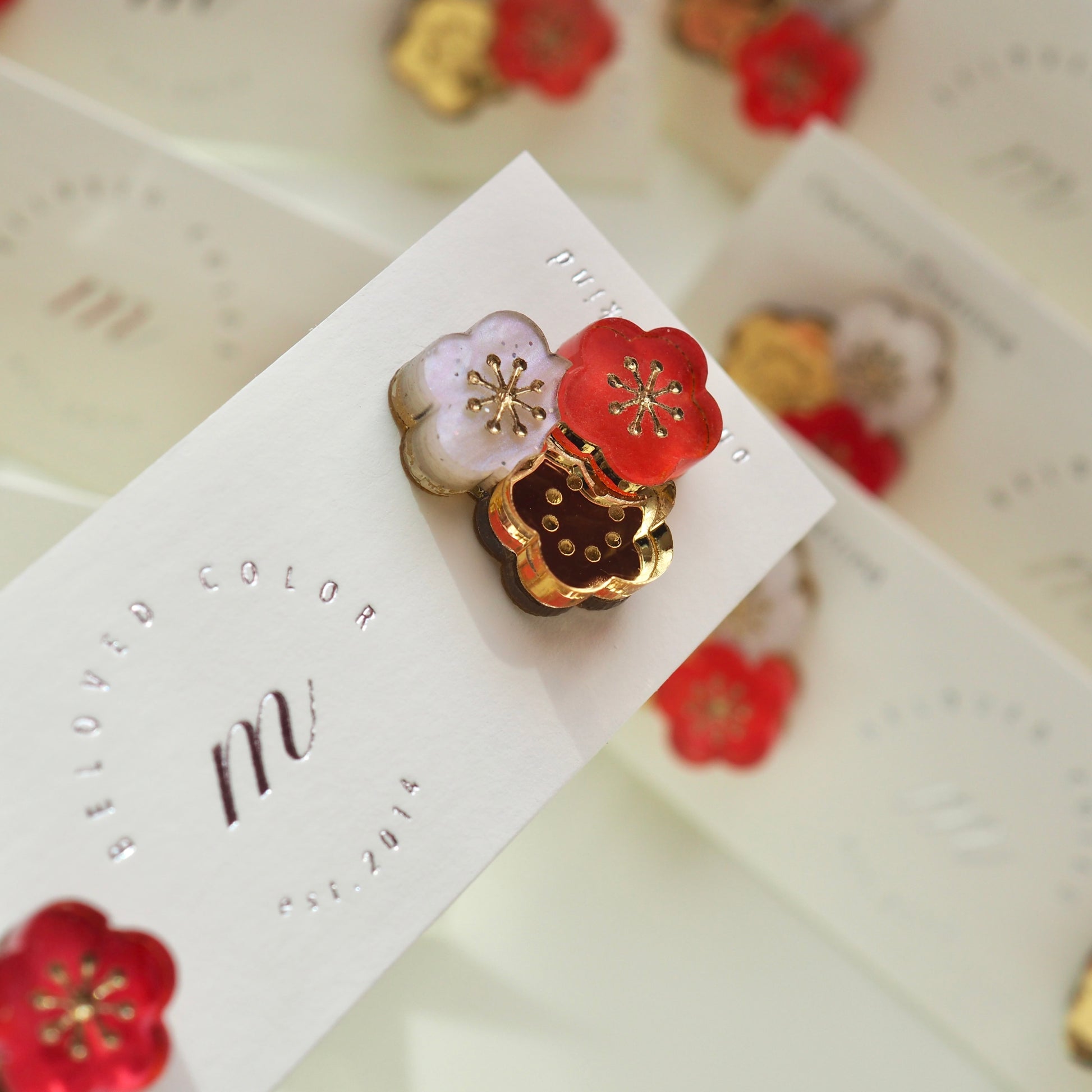 ・mのアクセサリーはデザイナーのMomoと制作スタッフにより一つ一つ制作されたハンドメイド品です。