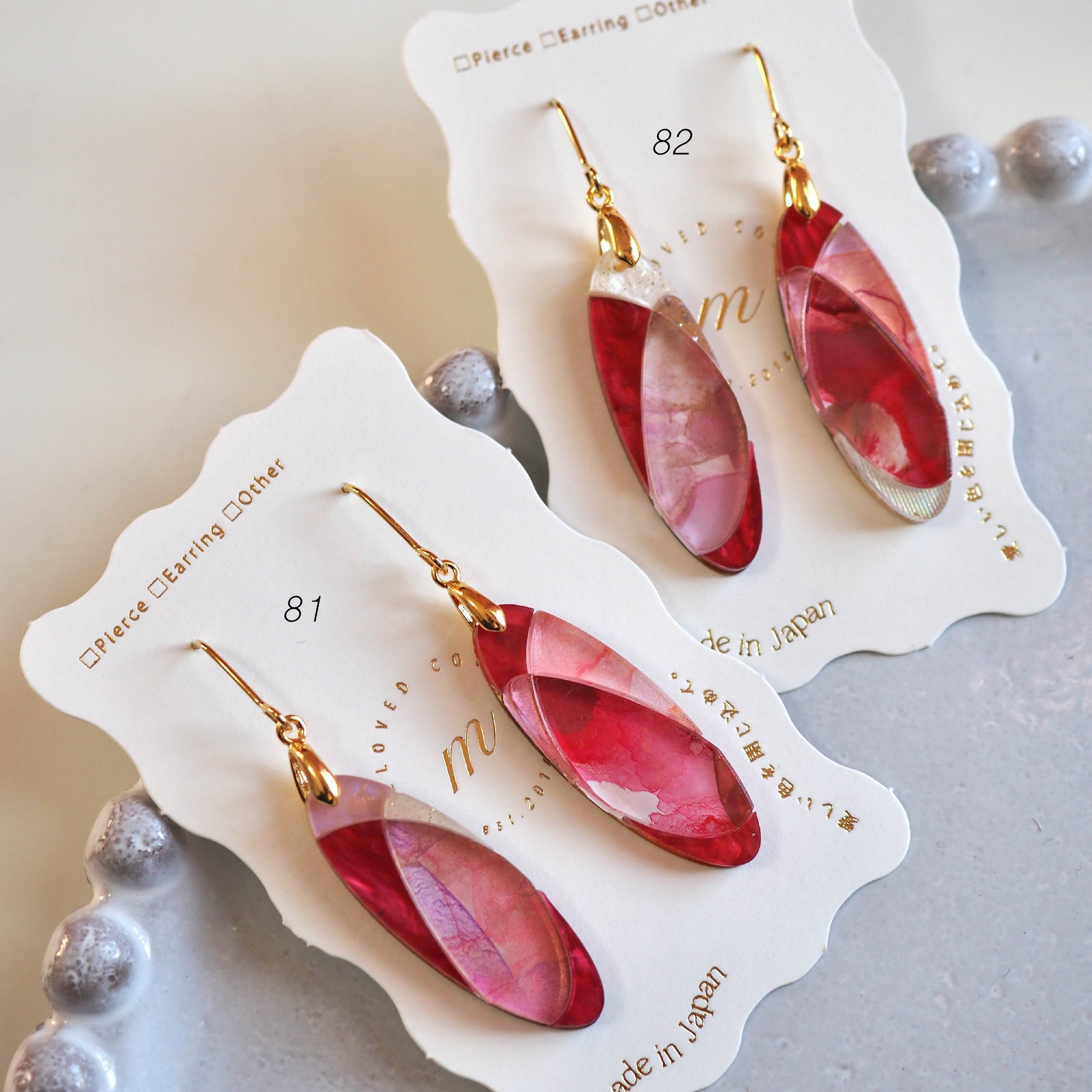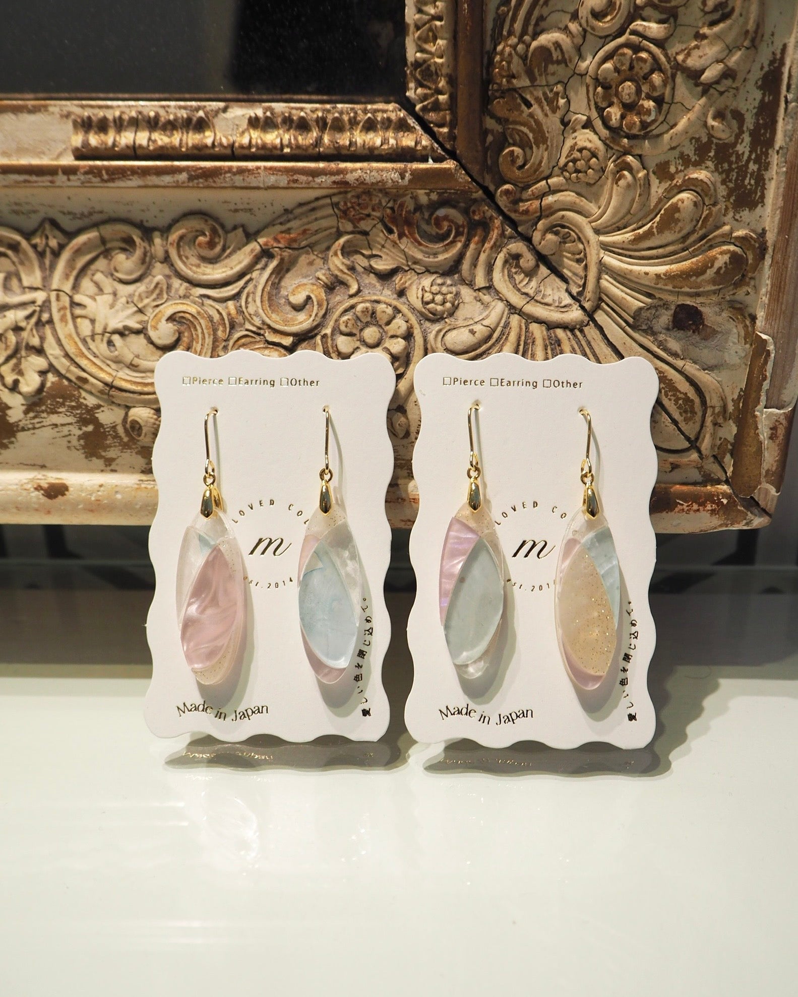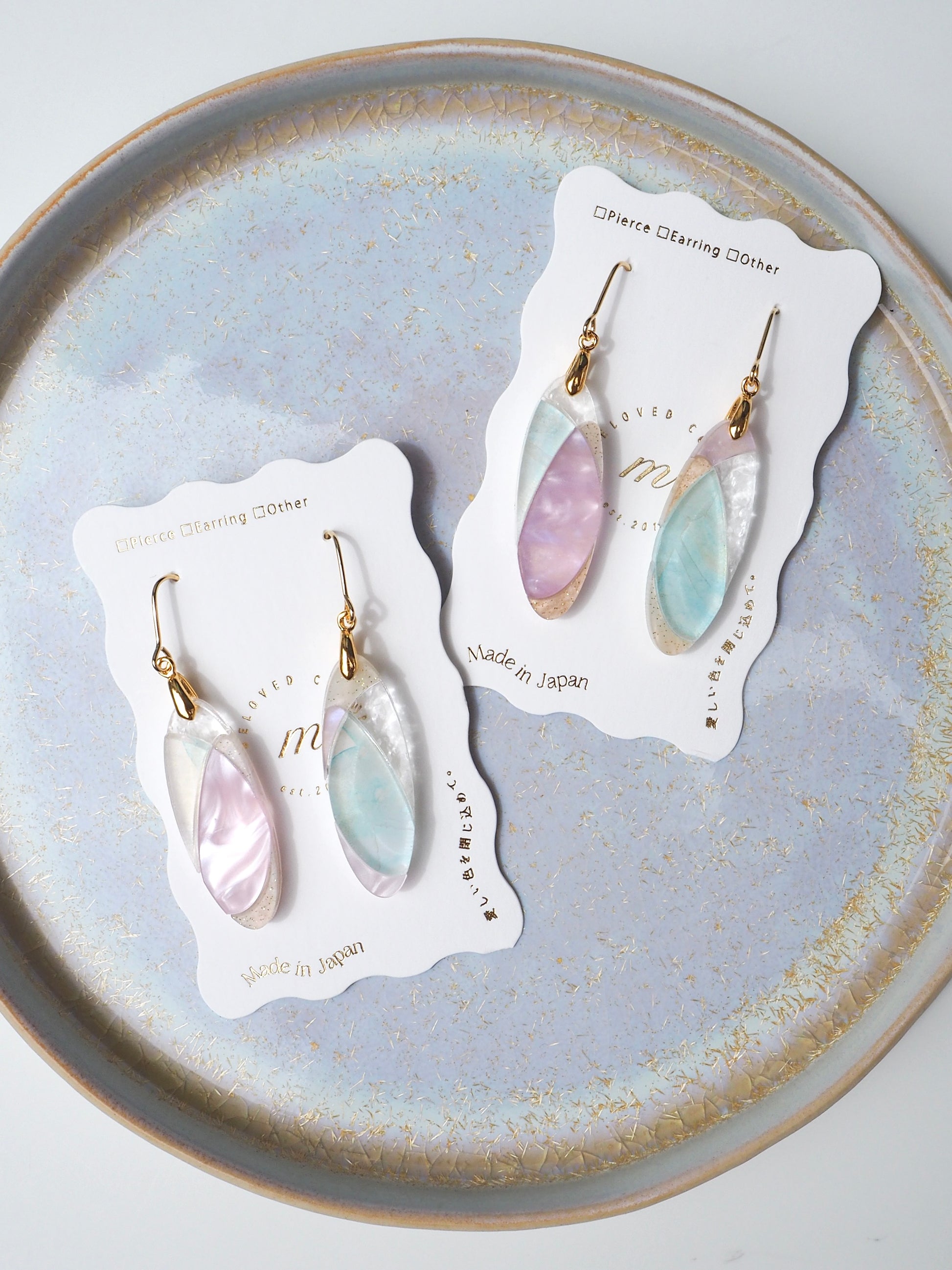 ピアスは英語でpierceではなく"earrings"が正しい表記になります。そのため【ピアス [Earrings]】のご案内にしています。イヤリングは"Clip-on Earrings"です。読みづらい箇所があるかと思いますが、海外のお客様へのアナウンスも兼ねておりますので、何卒ご了承ください。